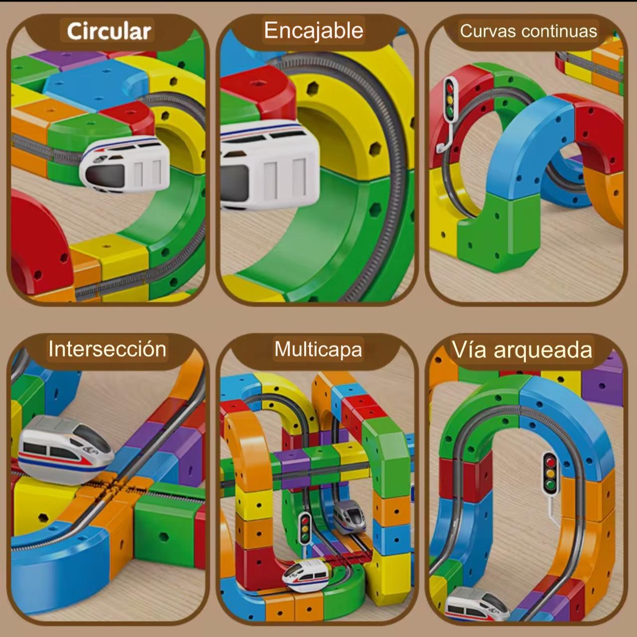 Las piezas se conectan fácilmente, permitiendo a los niños crear su propio circuito en pocos segundos. Ideal para jugar, desmontar y volver a construir.